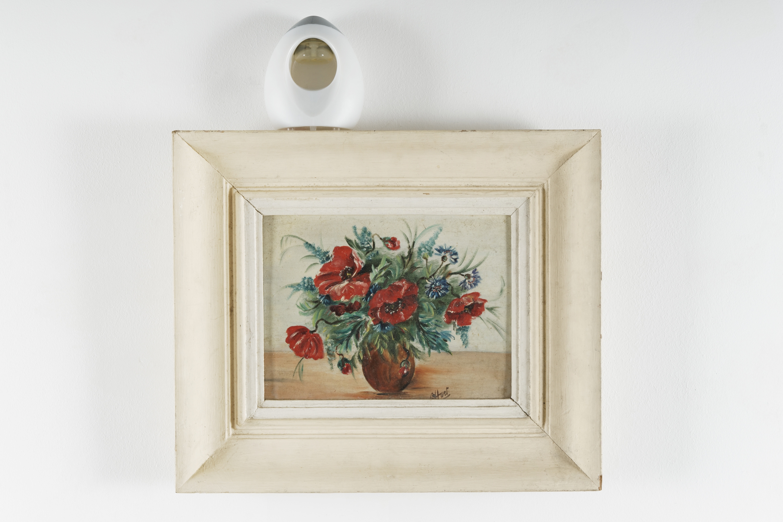 Huile sur bois signée « Huet », encadrée et diffuseur d’odeur
