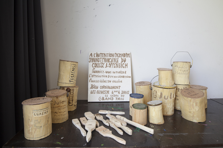 Sous la forme d’ateliers et de rencontres, Nicolas Floc’h a invité les collégiens et enseignants à imaginer des propositions collectives pouvant répondre à leurs besoins et envies afin de modifier la vie en communauté au sein de leur établissement scolaire. Les élèves et professeurs ont constitué une liste de propositions anonymes dont émergent des désirs communs : une salle de musique, un mur d’expression artistique, une heure de sommeil en plus, un environnement végétal plus présent, une fontaine à eau, une sonnerie mélodieuse, un espace de repos, etc. C’est à partir de ces listes que l’artiste, en consultation avec les directions des collèges et les partenaires du projet, a choisi les objets retenus pour le projet, qui ont été ensuite réalisés en bois, à partir de matériaux de récupération par les collégiens mais également par un groupe d’enseignants volontaires.